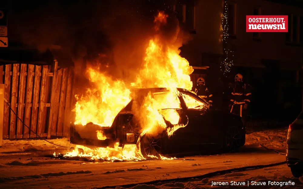 Rond vijf uur dinsdagochtend werd de brandweer gealarmeerd voor een autobrand aan de Galvanistraat in de wijk Oosterheide. Bij aankomst stond het voertuig al volledig in brand. De brandweer wist het vuur snel onder controle te krijgen, maar van de auto bleef weinig over.Naast het uitgebrande voertuig trof de politie een tas en een flesje aan. Deze vondst wordt meegenomen in het onderzoek naar de oorzaak van de brand.