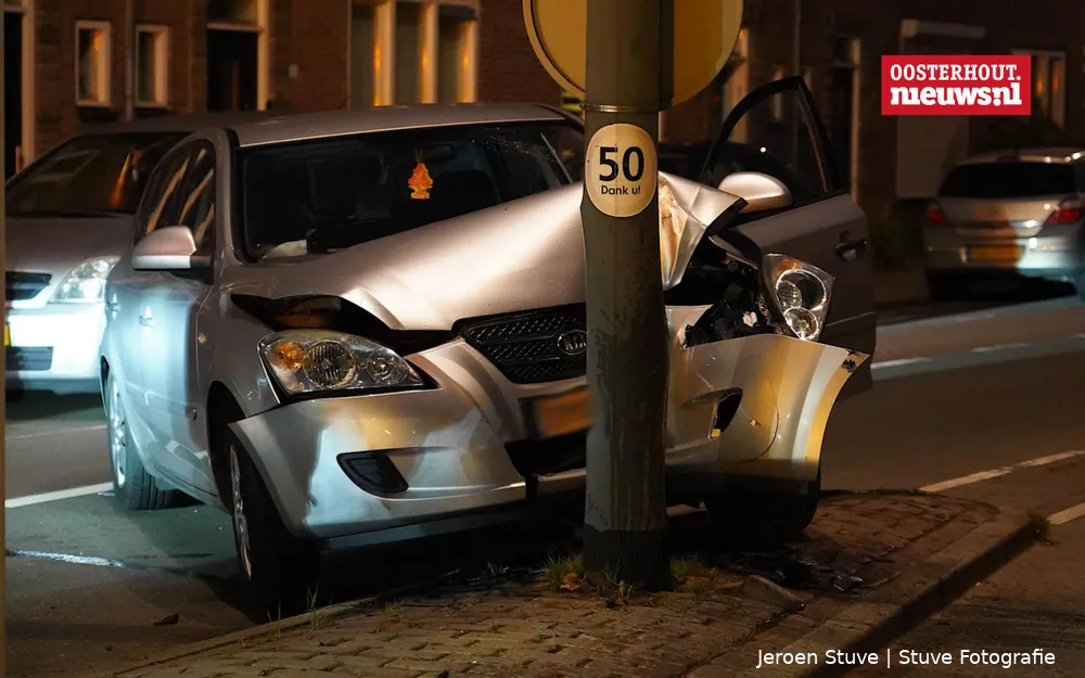 Op de vroege zondagochtend rond 7.15 uur is op de Strijenstraat een auto tegen een lantaarnpaal gebotst.