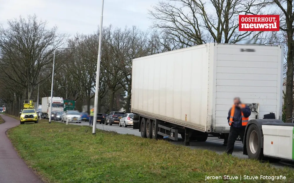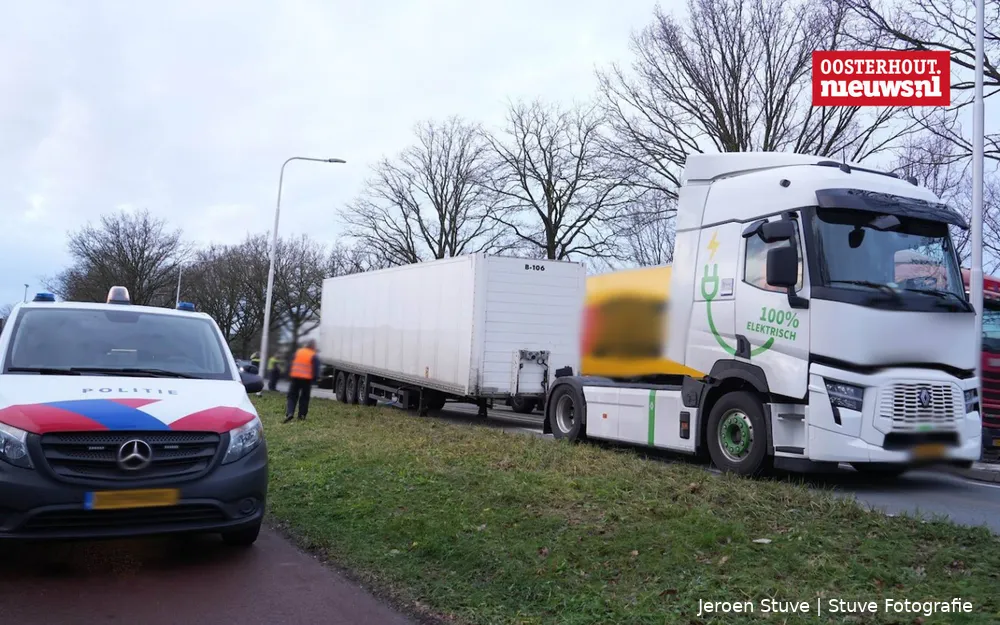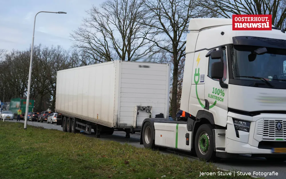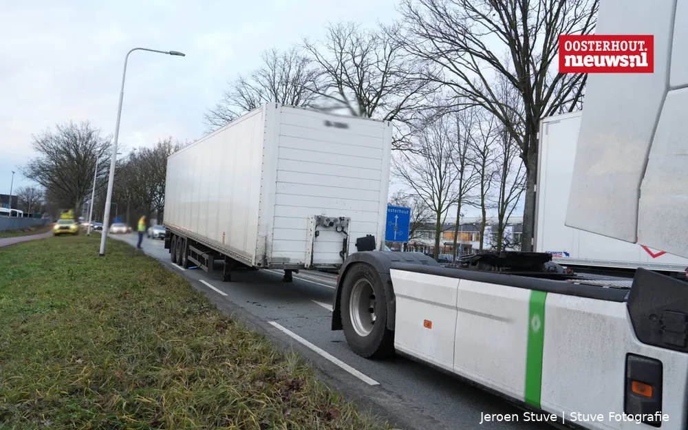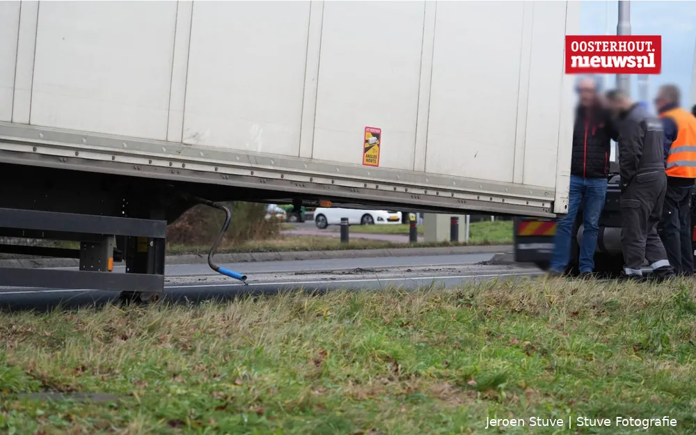 Donderdag aan het einde van de middag is het verkeer bij de rotonde aan de Vijf Eikenweg in Oosterhout tijdelijk ontregeld geraakt nadat een oplegger van een vrachtwagen onverwacht loskwam. Het incident gebeurde vlak voor de rotonde waar de Florijnstraat en Souvereinstraat samenkomen. De vrachtwagenchauffeur was onderweg met een lading kleding en moest afremmen voor het naderende verkeer op de rotonde. Op dat moment raakte de oplegger los van de trekker. Hoe dit precies heeft kunnen gebeuren, is niet duidelijk. De bestuurder gaf aan geen verklaring te hebben voor het losschieten van de aanhanger.