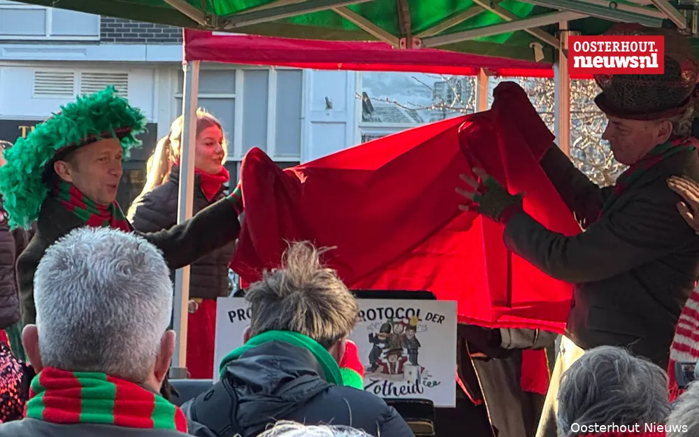 Zaterdagmiddag werd op een zonovergoten Basiliekplein het boek 'Protocol der Zotheid' gepresenteerd.