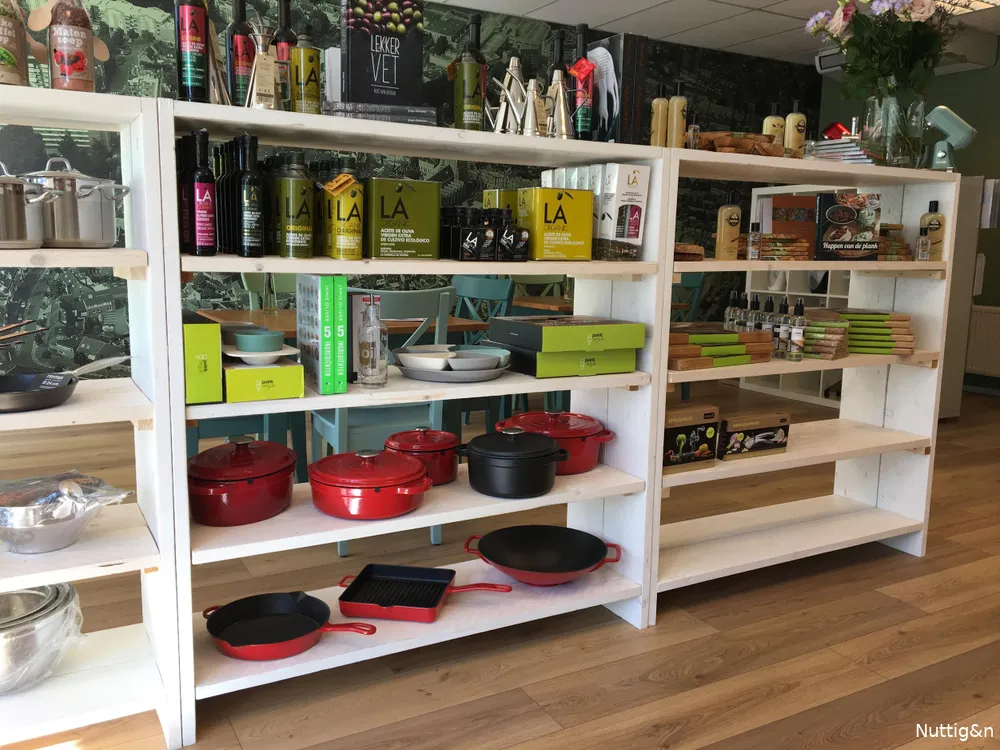 Je kunt dus in de nieuwe winkel alles kopen voor thuis, maar je kunt voortaan ook ter plekke iets nuttigen bij Nuttig&n! Wat dacht je van een lekkere kop koffie of thee? Of juist een lekker wijntje of een koel biertje bij een smakelijke lunch? Op de menukaart staan gezonde gerechten zoals tosti’s, soepen, salades en broodjes. En wist je dat in de nieuwe lunchroom een prachtig fotobehang van meer dan 7 meter van het centrum van Oosterhout hangt? Een bezoekje meer dan waard! Je vindt Nuttig&n op de Leijsenhoek 15.