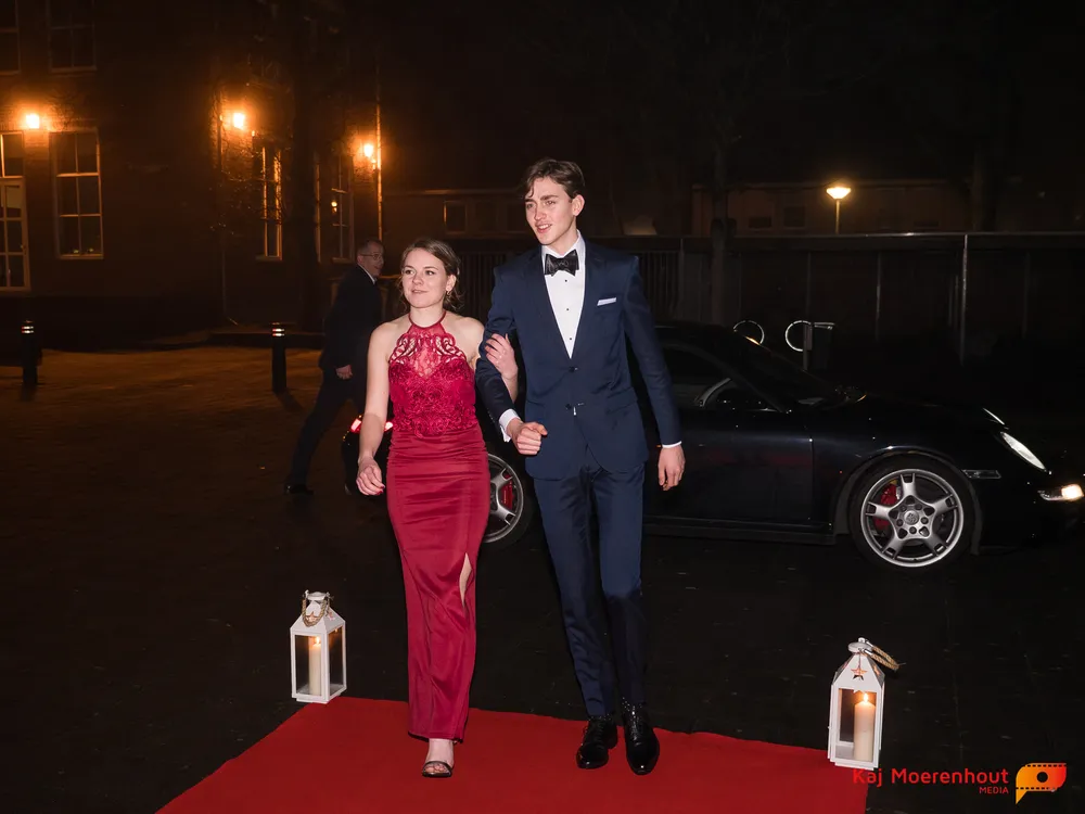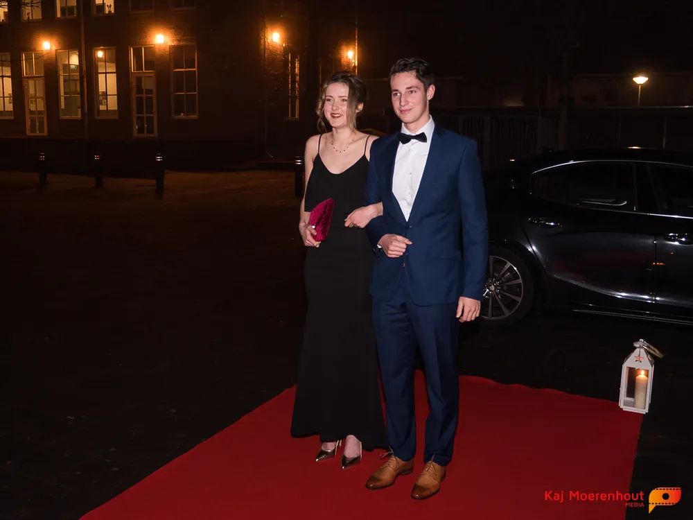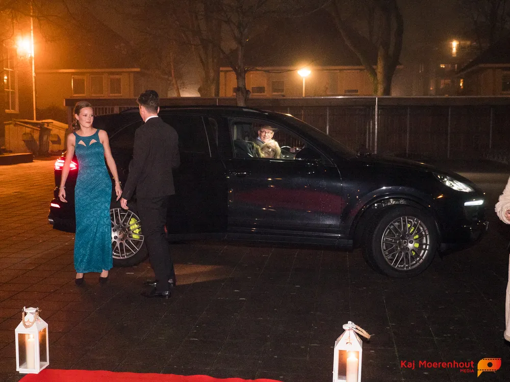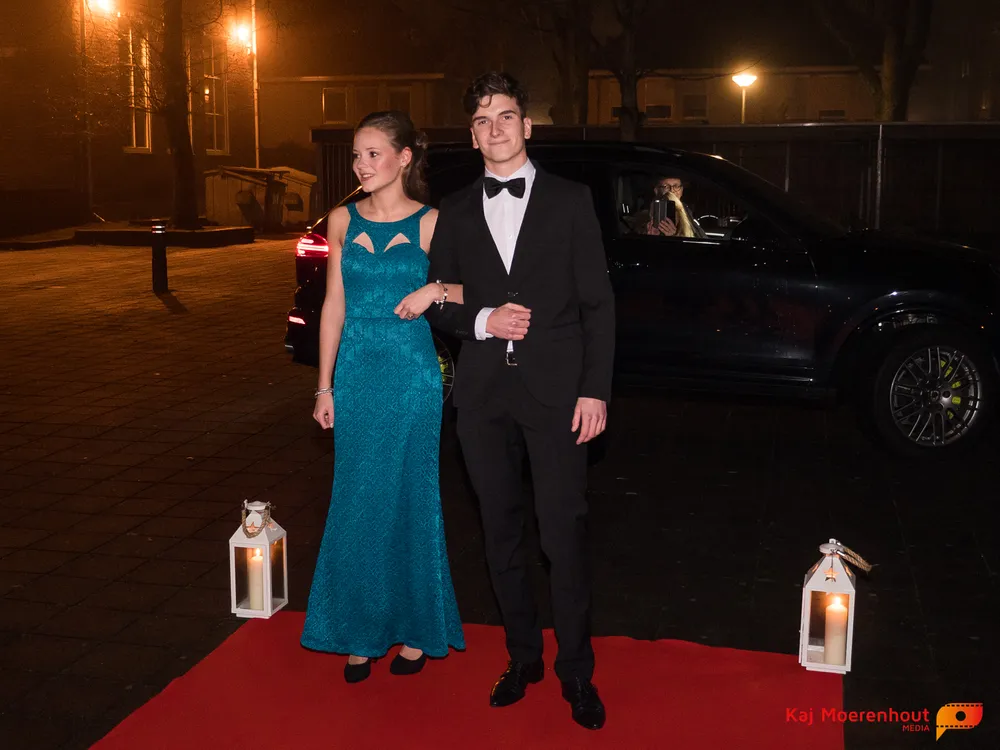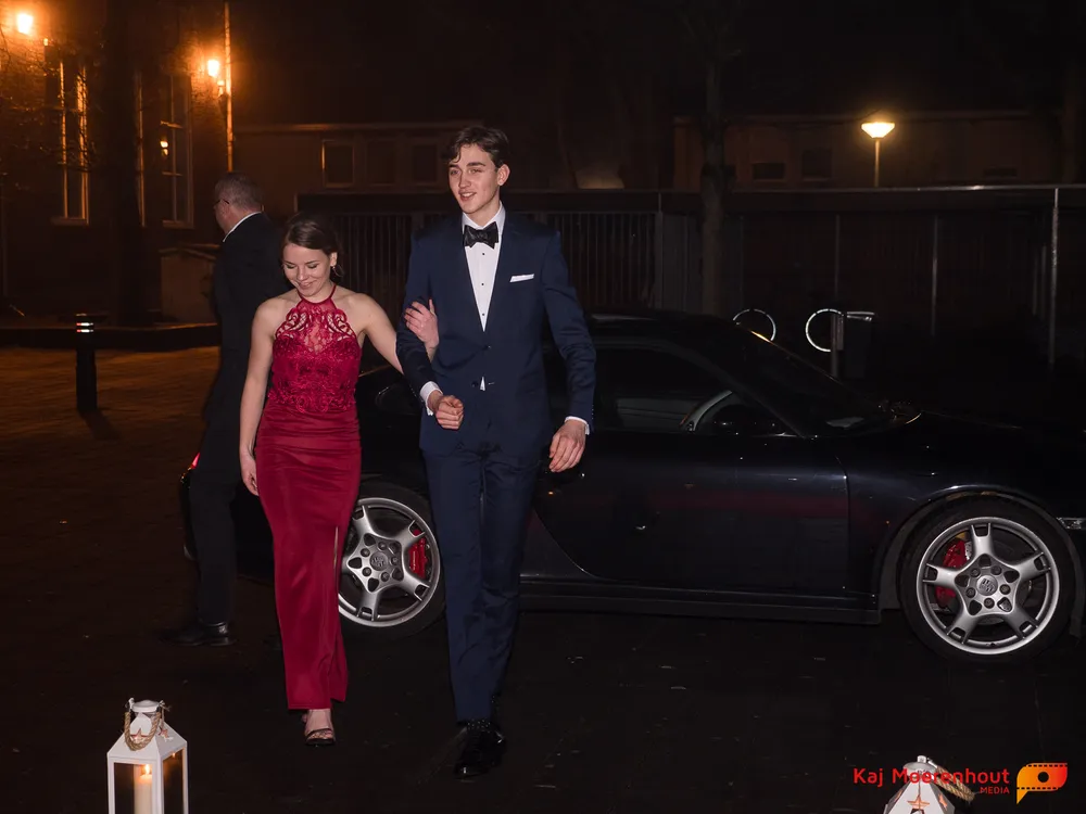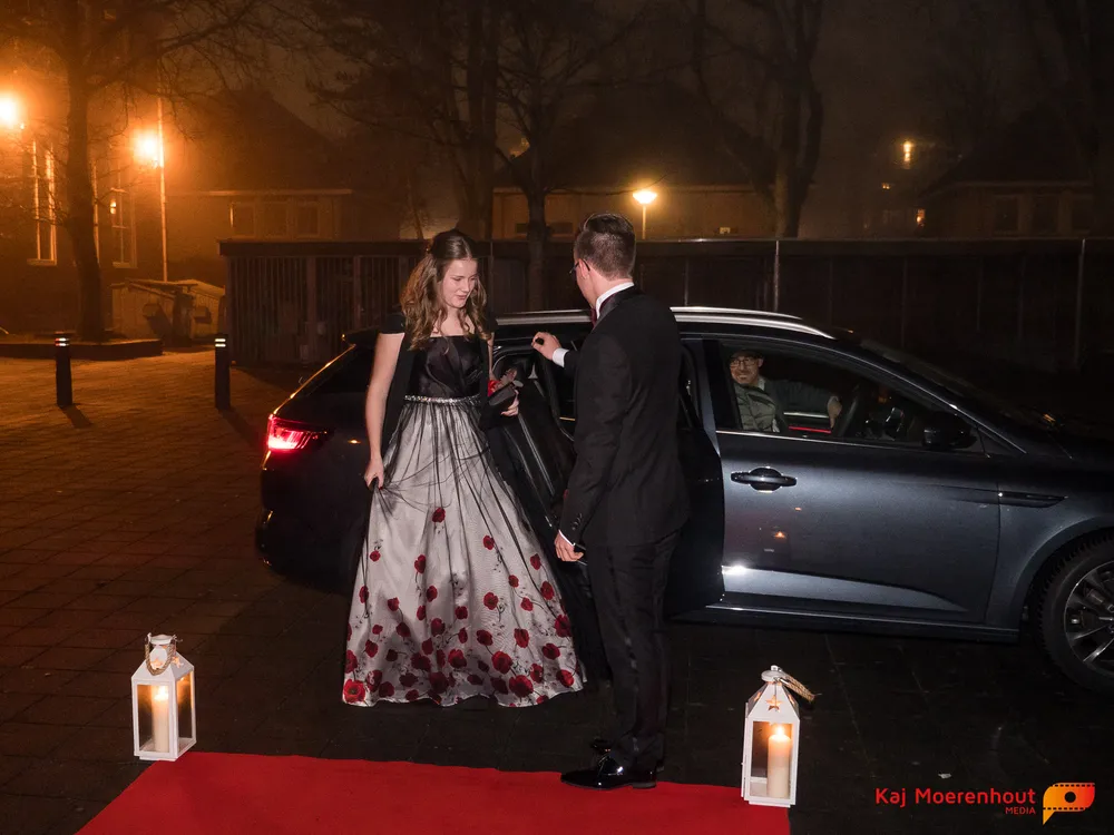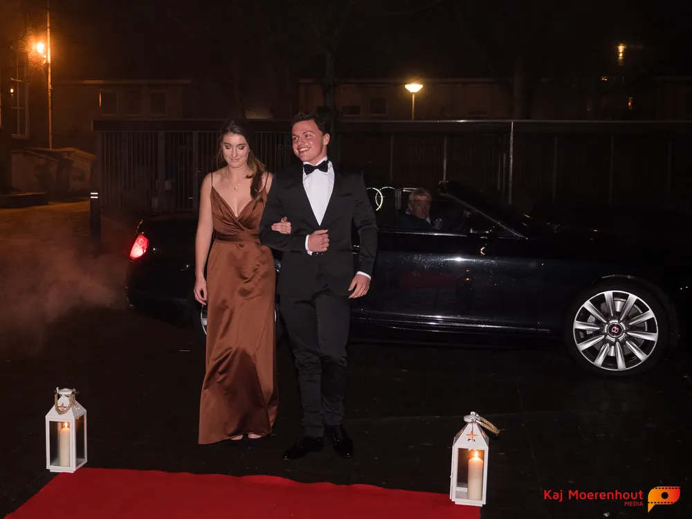 De rode loper was uitgerold, de windlichten en vuurkorven accentueerden de sfeer van deze prachtige avond. Ten overstaan van leerlingen, oud-leerlingen, docenten, ouders en familieleden arriveerden de examenkandidaten aan het begin van de avond in allerlei verschillende voertuigen. Een breed scala trok voorbij aan het publiek: sportauto’s, oldtimers, SUV’s, maar ook het elektrisch wagenpark was vertegenwoordigd. En ook Bentley’s, Porsches en zelfs een antieke Londense taxi waren van de partij.