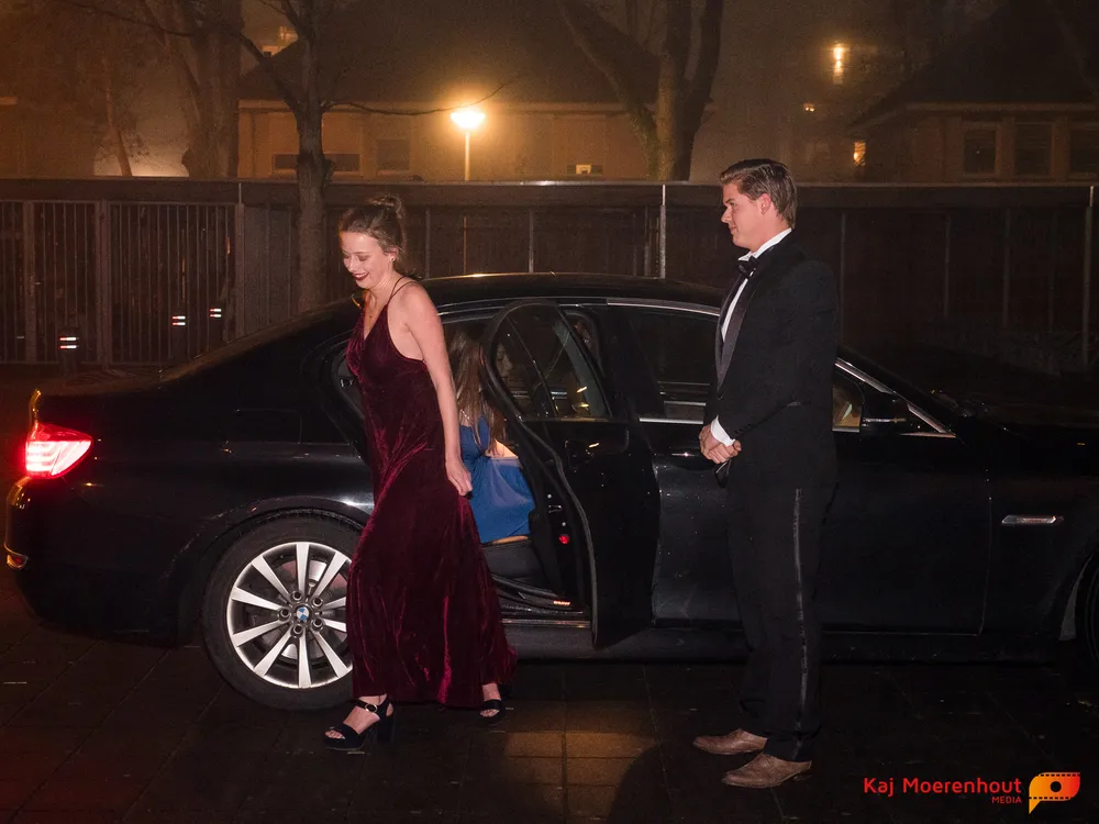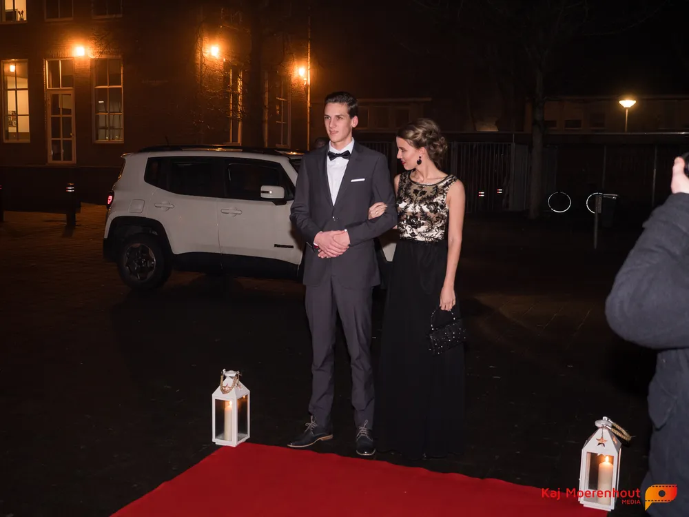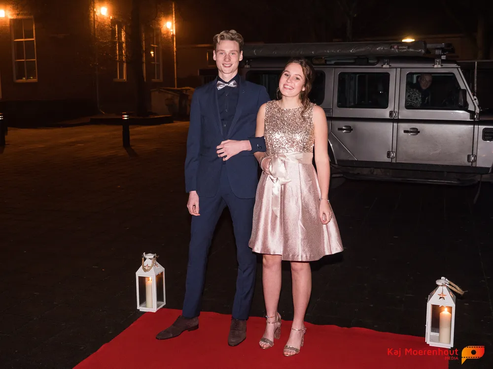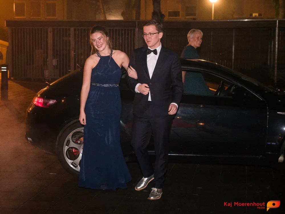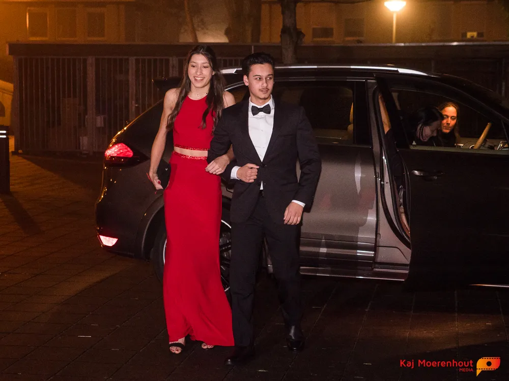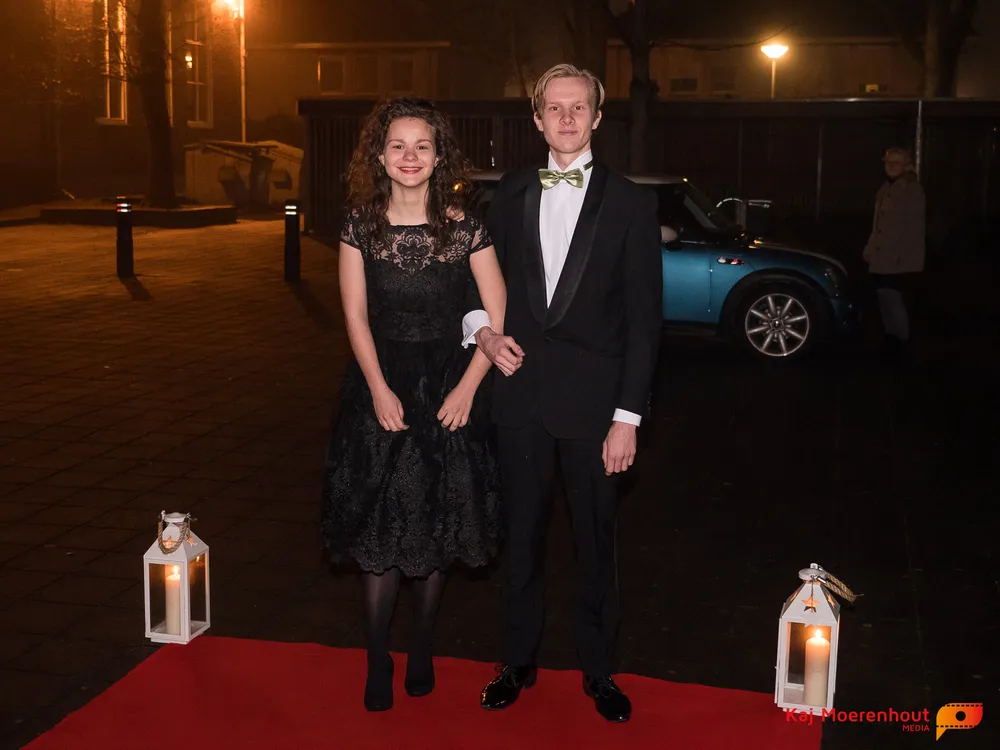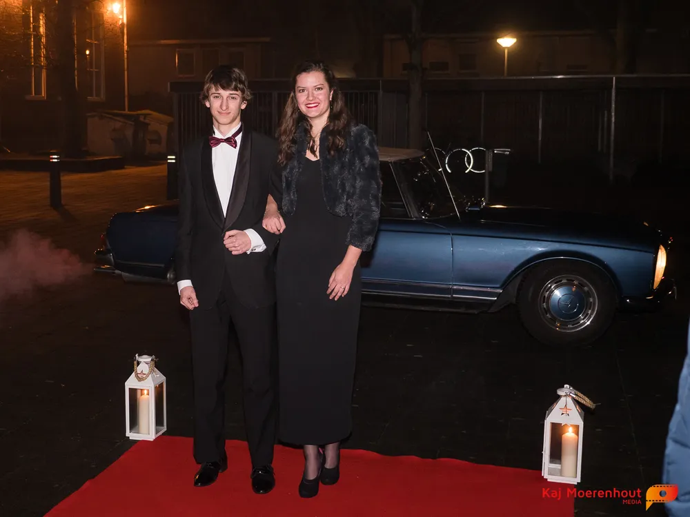 De rode loper was uitgerold, de windlichten en vuurkorven accentueerden de sfeer van deze prachtige avond. Ten overstaan van leerlingen, oud-leerlingen, docenten, ouders en familieleden arriveerden de examenkandidaten aan het begin van de avond in allerlei verschillende voertuigen. Een breed scala trok voorbij aan het publiek: sportauto’s, oldtimers, SUV’s, maar ook het elektrisch wagenpark was vertegenwoordigd. En ook Bentley’s, Porsches en zelfs een antieke Londense taxi waren van de partij.