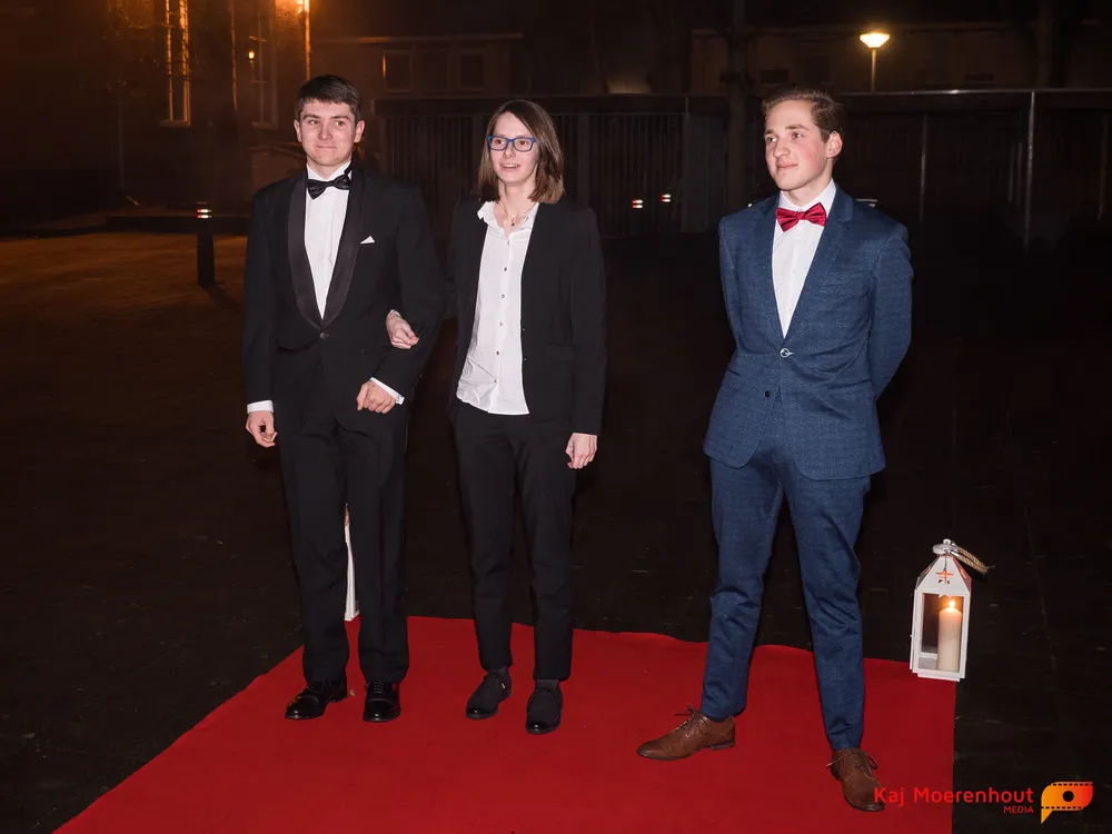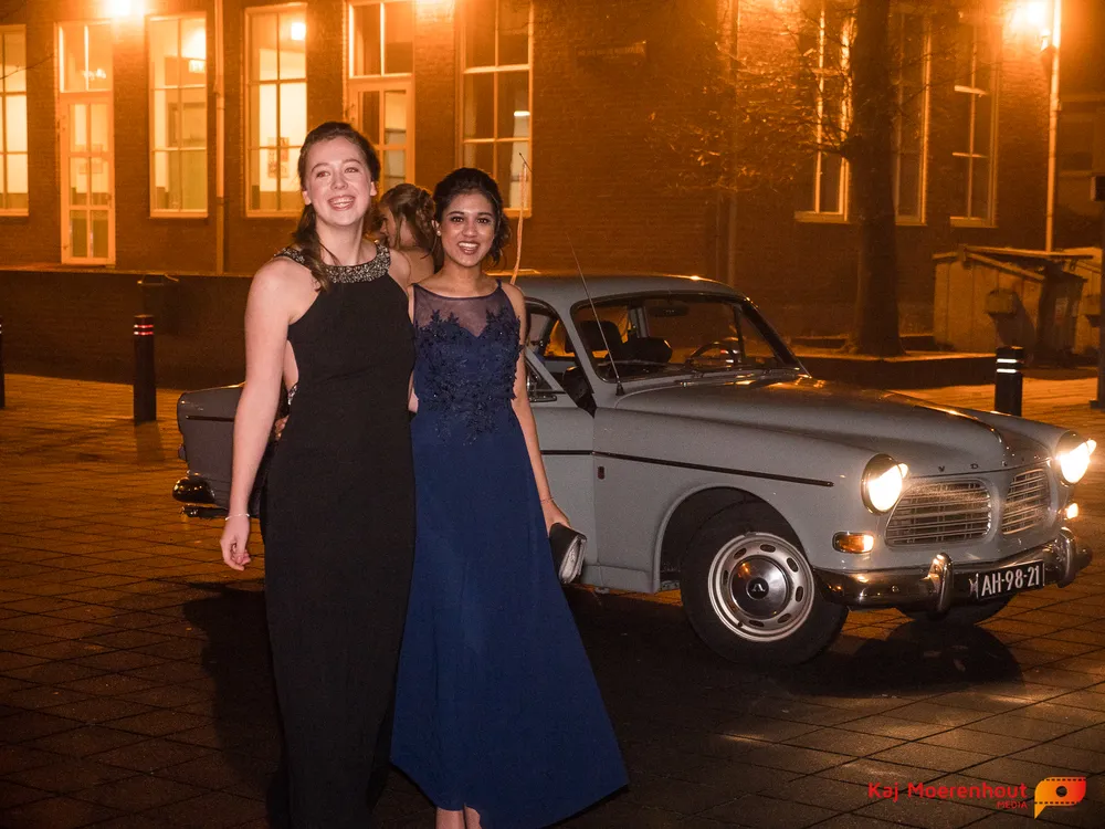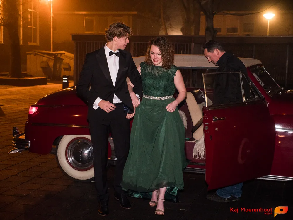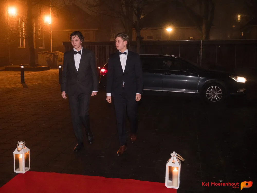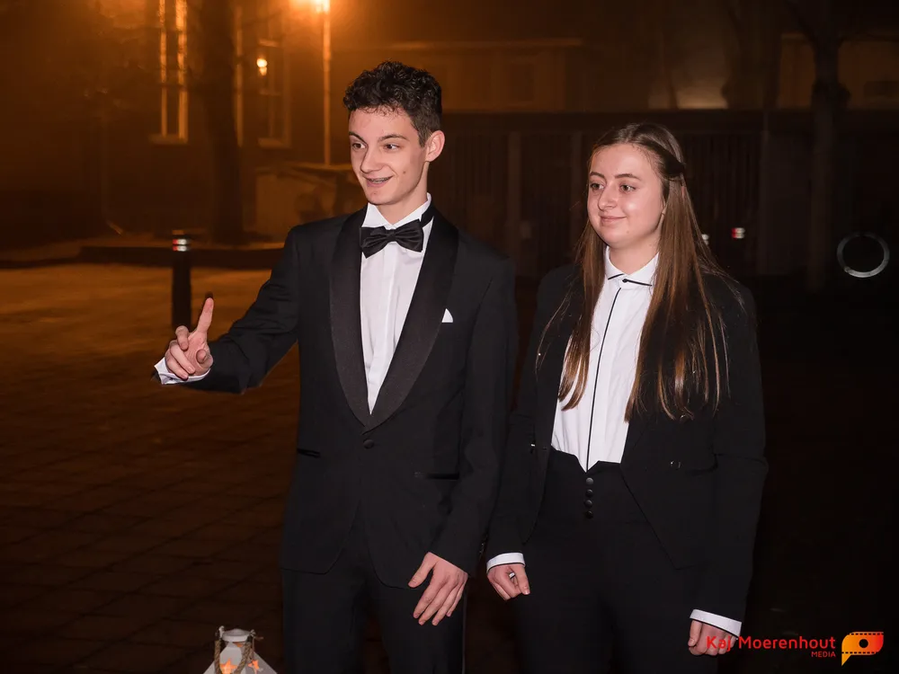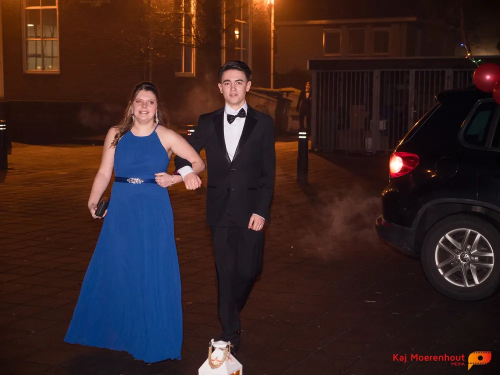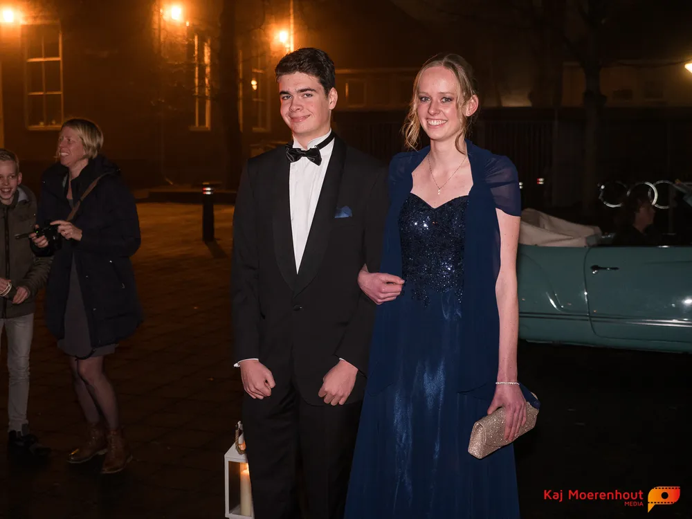 De rode loper was uitgerold, de windlichten en vuurkorven accentueerden de sfeer van deze prachtige avond. Ten overstaan van leerlingen, oud-leerlingen, docenten, ouders en familieleden arriveerden de examenkandidaten aan het begin van de avond in allerlei verschillende voertuigen. Een breed scala trok voorbij aan het publiek: sportauto’s, oldtimers, SUV’s, maar ook het elektrisch wagenpark was vertegenwoordigd. En ook Bentley’s, Porsches en zelfs een antieke Londense taxi waren van de partij.