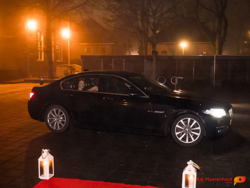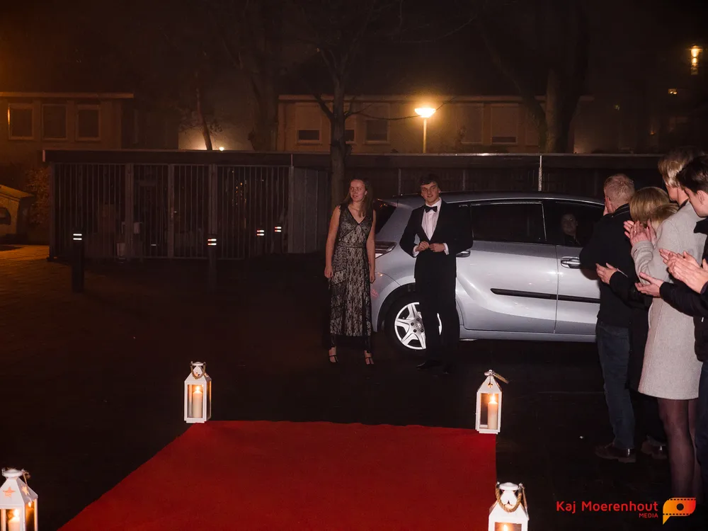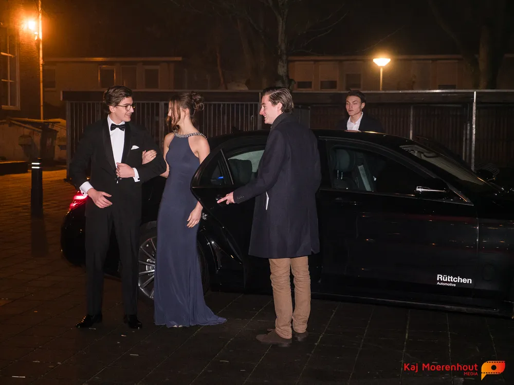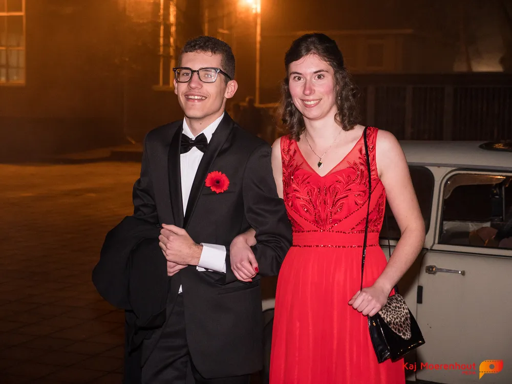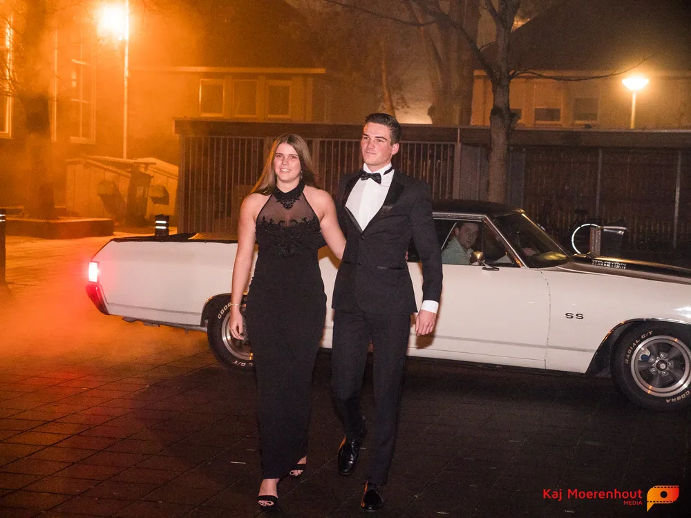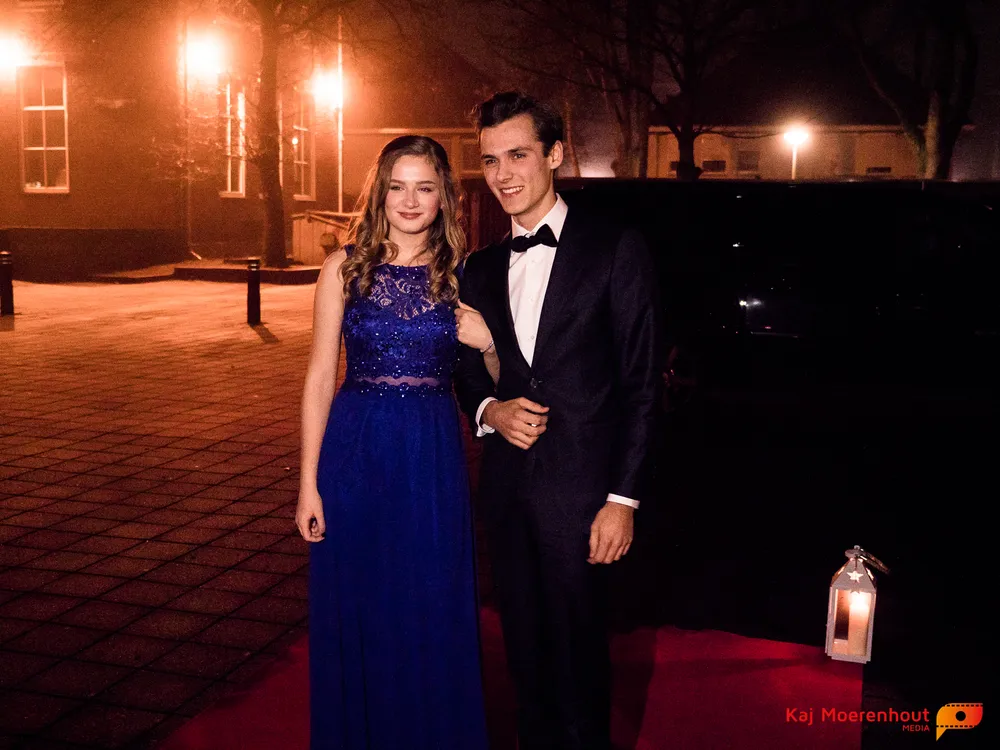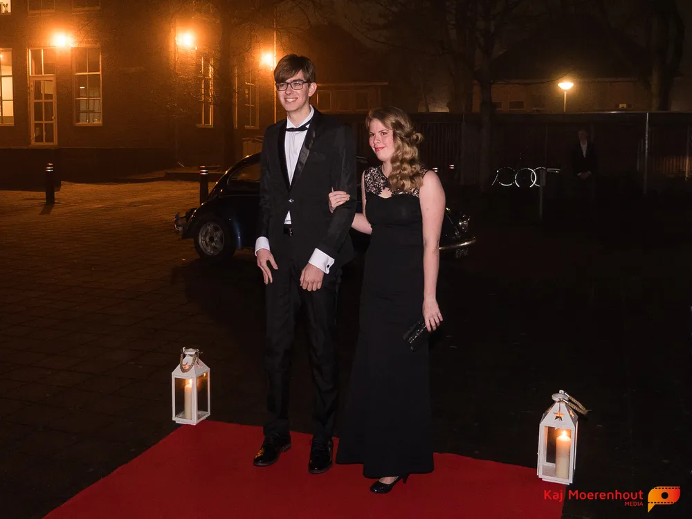 De rode loper was uitgerold, de windlichten en vuurkorven accentueerden de sfeer van deze prachtige avond. Ten overstaan van leerlingen, oud-leerlingen, docenten, ouders en familieleden arriveerden de examenkandidaten aan het begin van de avond in allerlei verschillende voertuigen. Een breed scala trok voorbij aan het publiek: sportauto’s, oldtimers, SUV’s, maar ook het elektrisch wagenpark was vertegenwoordigd. En ook Bentley’s, Porsches en zelfs een antieke Londense taxi waren van de partij.