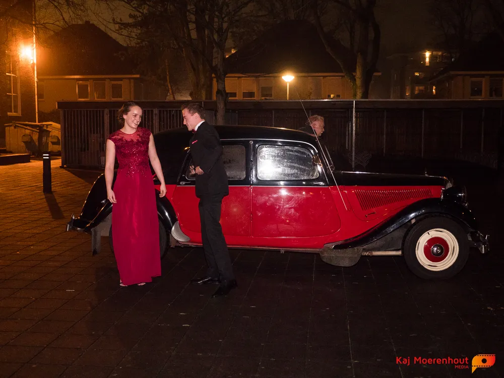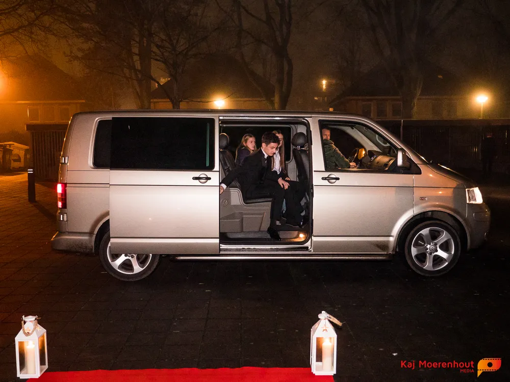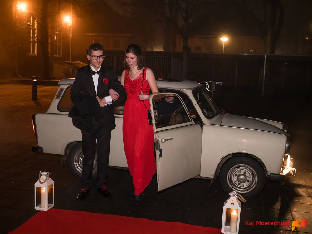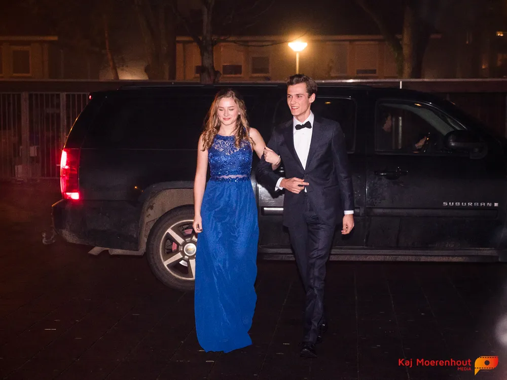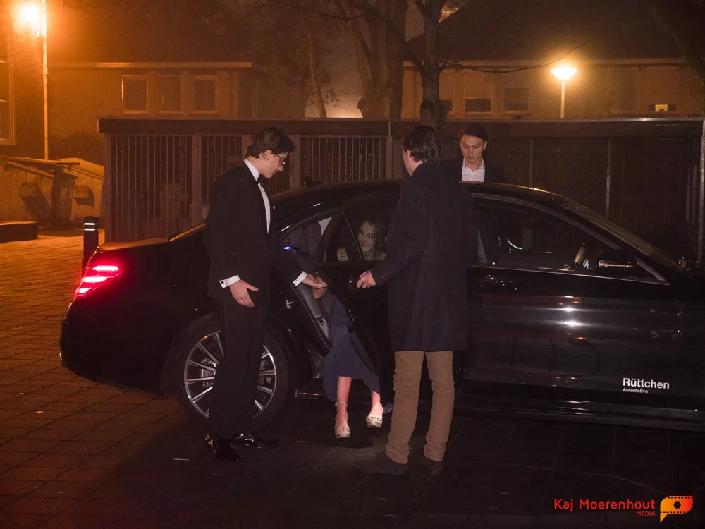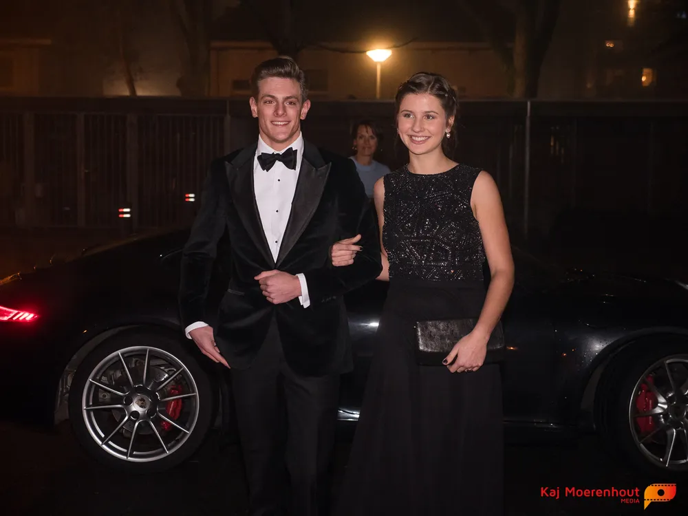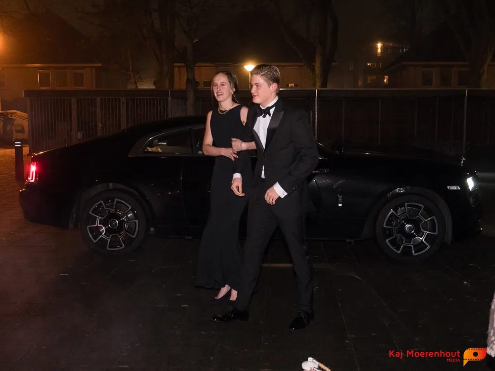 De rode loper was uitgerold, de windlichten en vuurkorven accentueerden de sfeer van deze prachtige avond. Ten overstaan van leerlingen, oud-leerlingen, docenten, ouders en familieleden arriveerden de examenkandidaten aan het begin van de avond in allerlei verschillende voertuigen. Een breed scala trok voorbij aan het publiek: sportauto’s, oldtimers, SUV’s, maar ook het elektrisch wagenpark was vertegenwoordigd. En ook Bentley’s, Porsches en zelfs een antieke Londense taxi waren van de partij.
