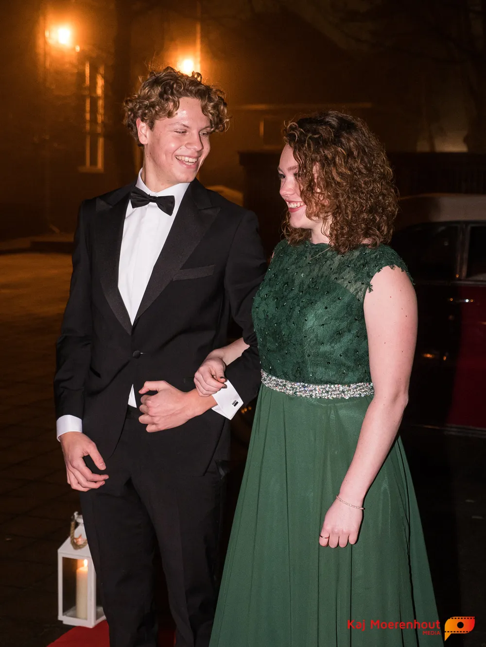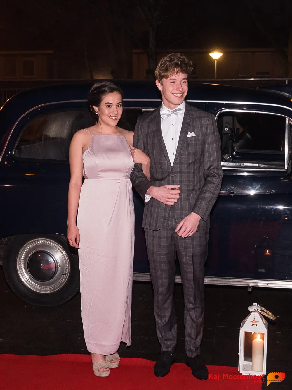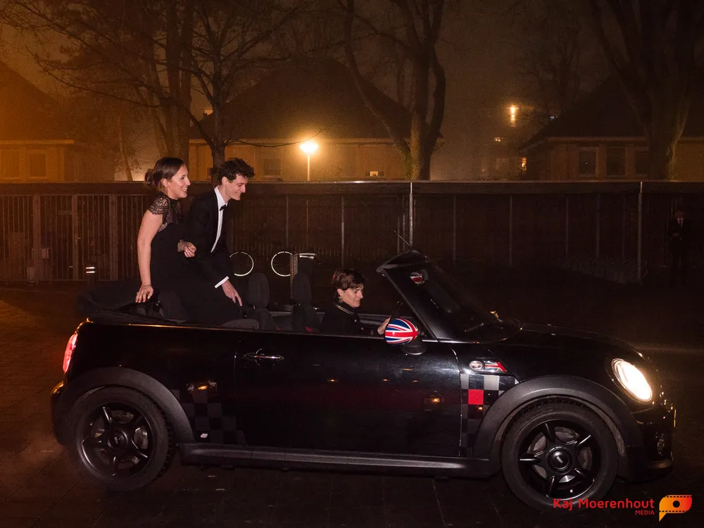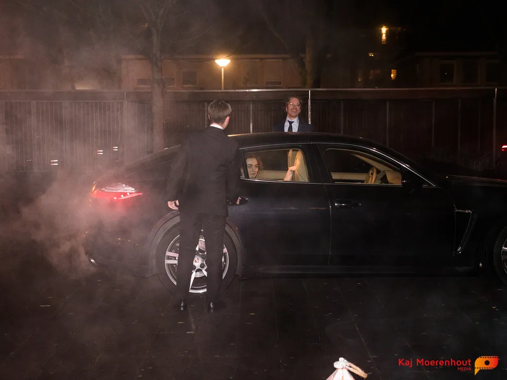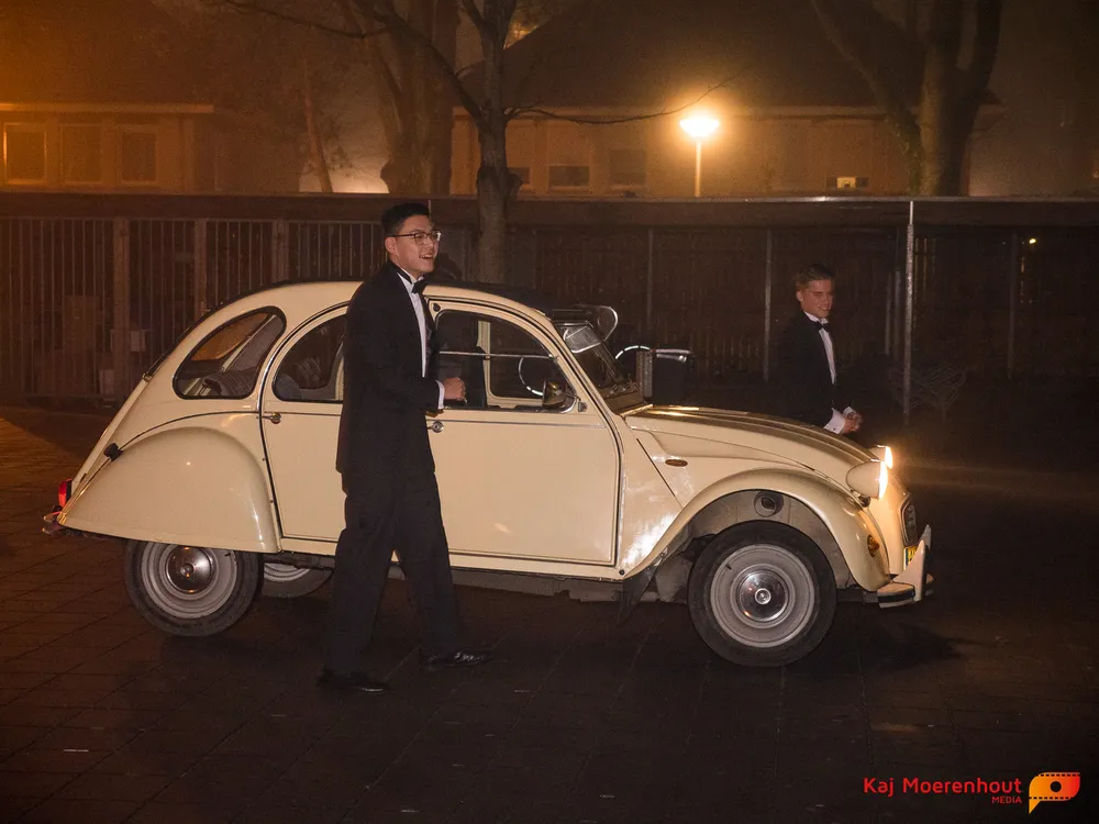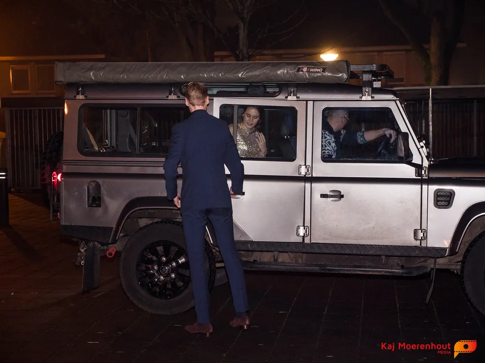 De rode loper was uitgerold, de windlichten en vuurkorven accentueerden de sfeer van deze prachtige avond. Ten overstaan van leerlingen, oud-leerlingen, docenten, ouders en familieleden arriveerden de examenkandidaten aan het begin van de avond in allerlei verschillende voertuigen. Een breed scala trok voorbij aan het publiek: sportauto’s, oldtimers, SUV’s, maar ook het elektrisch wagenpark was vertegenwoordigd. En ook Bentley’s, Porsches en zelfs een antieke Londense taxi waren van de partij.