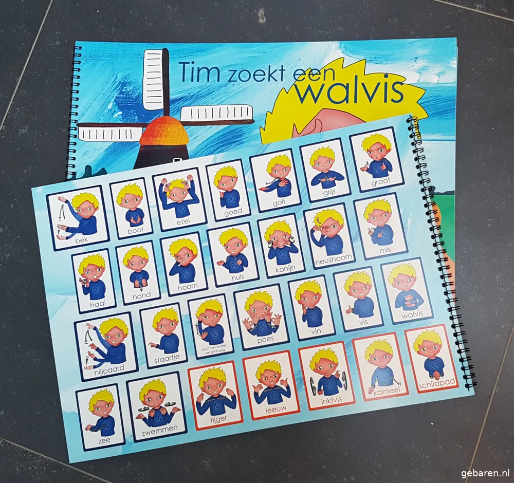 Een prentenboek voor peuters en kleuters waarin rijm, herhaling, dieren en gebaren op prettige wijze bij elkaar komen. Tim is een echte dierenvriend! Hij heeft gehoord over een WALVIS, maar hoe ziet die er eigenlijk uit? De juf van Tim weet dat wel; een walvis is groot, grijs, kan zwemmen en….. Spuit het water ver omhoog! Kijk en beleef de zoektocht van Tim: stil zitten is geen optie! Maak samen de gebaren die Tim aan ons voordoet. Zo wordt dit verhaal een ware beleving!